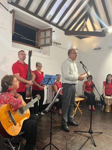 Inician la actuación musical el Grupo Gaura con la interpretación de El Café de chinitas. Con un recorrido por la importancia humana e intelectual de la figura de Federico García Lorca, el que suscribe este reportaje esbozó la extraordinaria personalidad de un Lorca que, en su ambiente familiar y primeros estudios, destacó por su afición a la música, en el contexto social de su Granada natal. Nace en Fuentevaqueros, 1898 -Viznar, Granada, 1936). Pasando largas temporadas en la residencia de campo familiar, la Huerta de San Vicente. El escritor, lector de los prosistas del 98, influido del modernismo rubendariano.