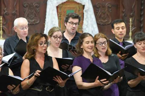 A continuación, tomó la voz The Elisyan Singers, dirigidos por Sam Laughton, para deleitar al público con un repertorio completo formado por nueve temas: Ave María -Parsons-, Ave Verum Corpus -W. Byrd-, O Clap Your Hands Together -O. Gibbons-, Hear My Prayer -Purcell-, Three Motets -Stanford-, Let all mortal flesh keep silence -Bairstow-, Bring us O Lord God -Harris-, A Hymn to the Mother of God -Tavener- y God be in my Head -Paul Edwardso-.