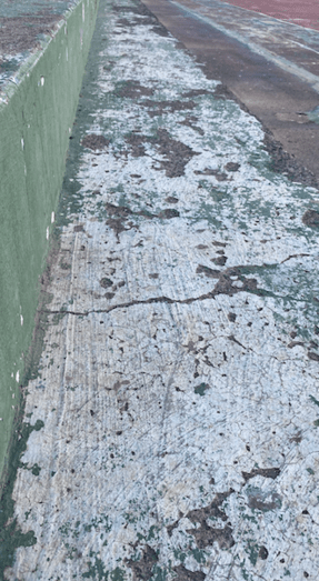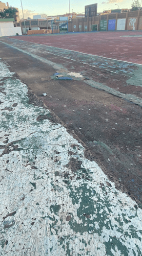 "Quitaron las farolas que estaban a punto de caerse y dejaron las bases donde estaban con los tornillos cortados. Si alguien se cae podría hacerse mucho daño. Basura por toda la cancha", reprocha un vecino.