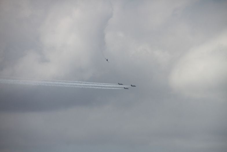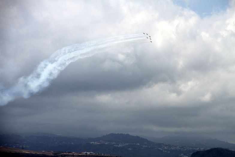 El piloto de la patrulla Águila adelantó a los medios que este domingo también se pudo ver «una maniobra muy bonita, la más conocida, con forma de corazón», y «si las nubes lo permiten también el 'Solo', que es la individual y la maniobra más exigente que puede hacer el avión», además de «algunas sorpresas».
