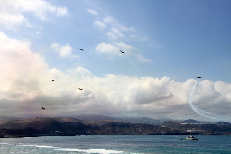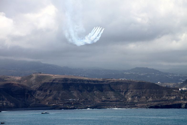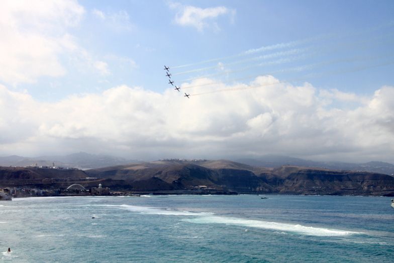 La Patrulla Águila llena de color Las Canteras en una exhibición con sorpresas