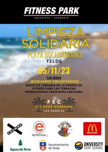 El gimnasio Fitness Park, ubicado en el centro comercial Las Terrazas, organiza este domingo una limpieza solidaria en la playa de Bocabarranco. La cita se inicia en el recinto deportivo a las 10.00 horas y desde allí partirán a la cala para la acción medioambiental.