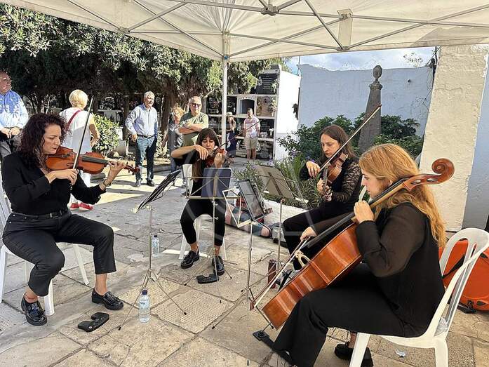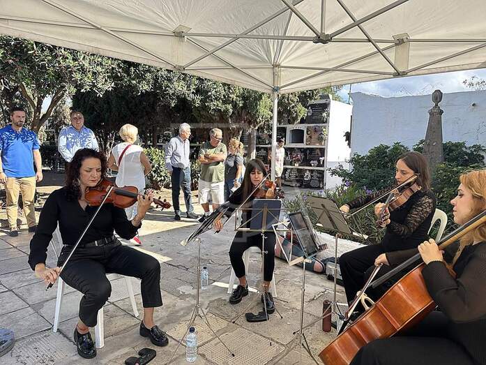 Los miles de personas que se acercaron este miércoles a los cementerios de San Juan y San Gregorio a cumplir con la tradición de visitar las tumbas de sus seres queridos para adornarlas con flores en la celebración de este primero noviembre, de la festividad de Todos los Santos, se vieron gratamente sorprendidos por los conciertos programados por las Concejalías de Cultura y Cementerios, que lidera el edil centrista Juan Martel.