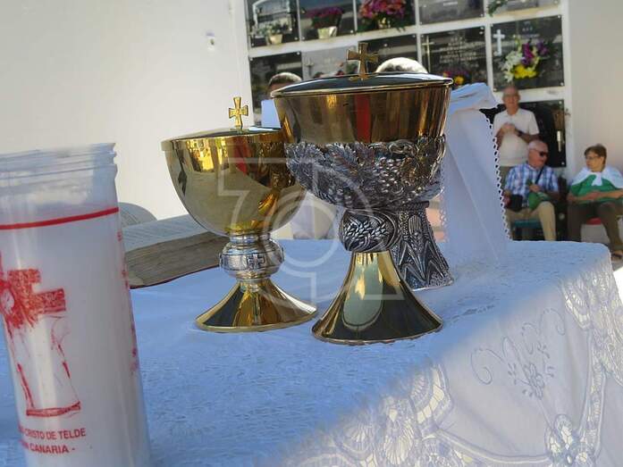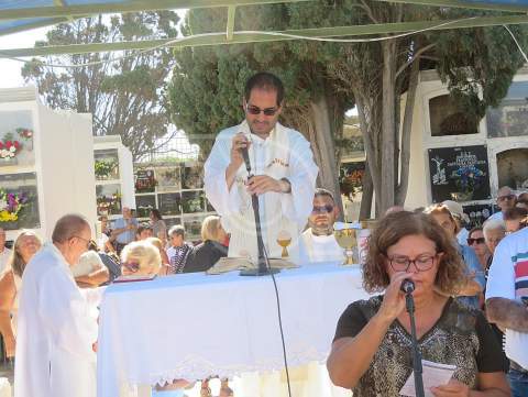 En la necrópolis de San Juan, la más antigua del municipio, a las 10.00 horas, el cuarteto Magec deleitó en el interior del equipamiento a los familiares y amigos de los difuntos que reposan en sus tumbas nichos y panteones con su música, un recital de temas clásicos que daría paso una hora después a una solemne eucaristía oficiada por el párroco de la Basílica de Telde, Antonio Juan López.