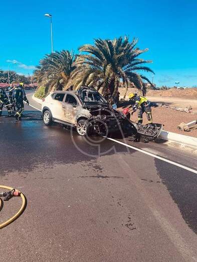Un vehículo turismo quedó prácticamente calcinado al incendiarse tras colisionar con otro cuando circulaba por el desvío de salida hacia la autovía GC-1, en dirección hacia la capital grancanaria, desde la Avenida del Cabildo (GC-10). El accidente ocurrió minutos antes de las 14.00 horas de este miércoles festivo, según informaron testigos presenciales.