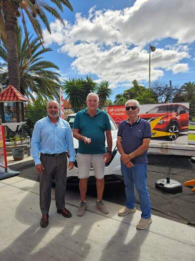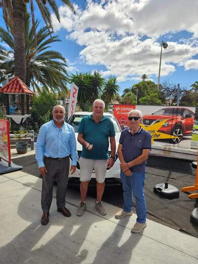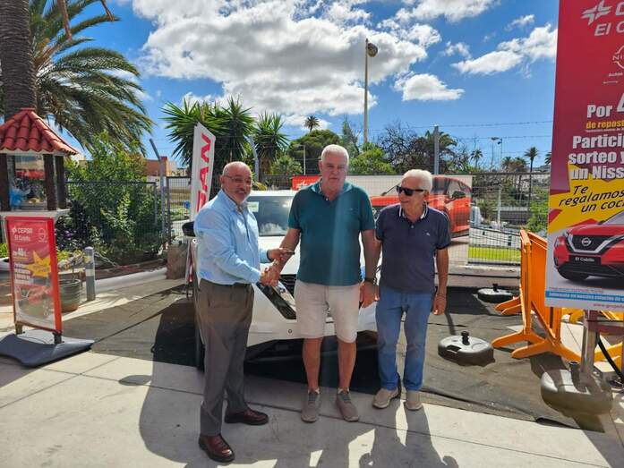 El acto de entrega de la llave y de toda la documentación que le hace acreditativo del vehículo tuvo lugar en las instalaciones de San Juan junto al propietario de la gasolinera, Juan Diego Falcón, y el representante de Nissan Telde.