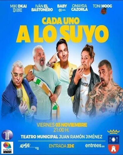Cada uno a lo suyo es el título del evento que tendrá lugar este viernes, a las 21.00 horas, en el Teatro Municipal de Telde protagonizado por los humoristas Omayra Cazorla, Miki Dkai, Toni Moog e Iván el Bastonero, que se han unido para ofrecer una noche cargada de risas durante 150 minutos.
