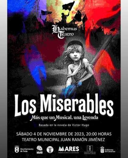 El Teatro Municipal de Telde ofrece este sábado, a partir de las 20.00 horas, el espectáculo musical Los miserables, basado en la novela del mismo nombre del escritor francés Víctor Hugo que fue estrenada en Paris en 1890. El evento forma parte de la programación para el mes de noviembre de la Concejalía de Cultura que dirige el edil centrista Juan Martel.