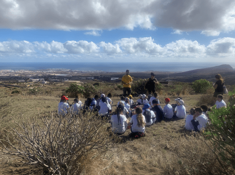 El programaa se inauguró este jueves con una actividad en la que 41 escolares del CEIP Alcalde Ramírez Bethencourt pudieron plantar y regar 57 ejemplares de especies, como dragos canarios, acebuches y lentiscos.