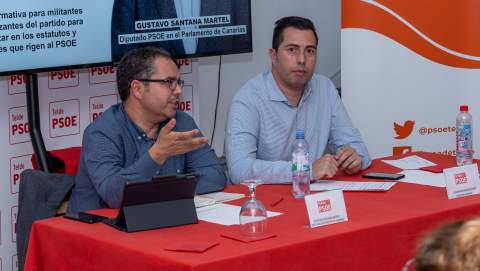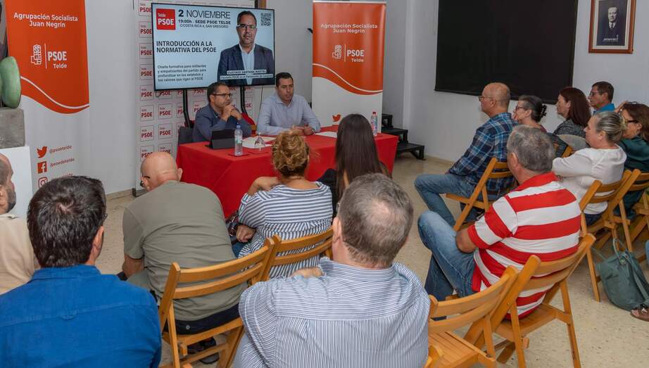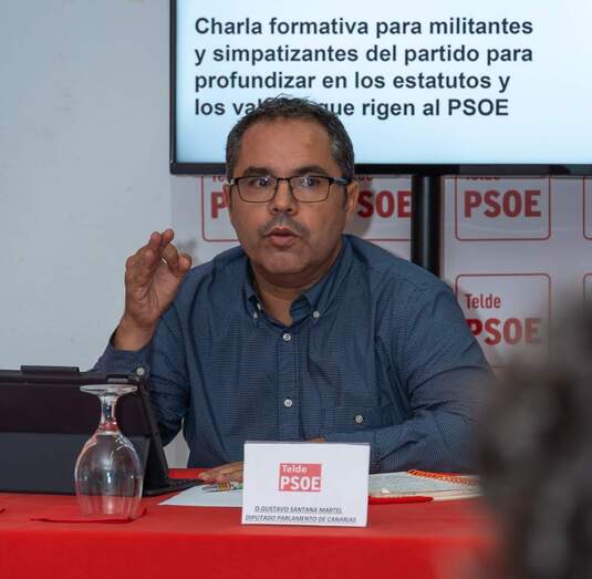 Unos 40 militantes y simpatizantes del PSOE de Telde asistieron este jueves en la Agrupación Juan Negrín de esta ciudad a la charla del diputado regional Gustavo Santana Martel, organizada para profundizar en la estatutos y los valores que rigen a la formación que rige los destinos del Gobierno de España y que posee cinco concejales en el Ayuntamiento.