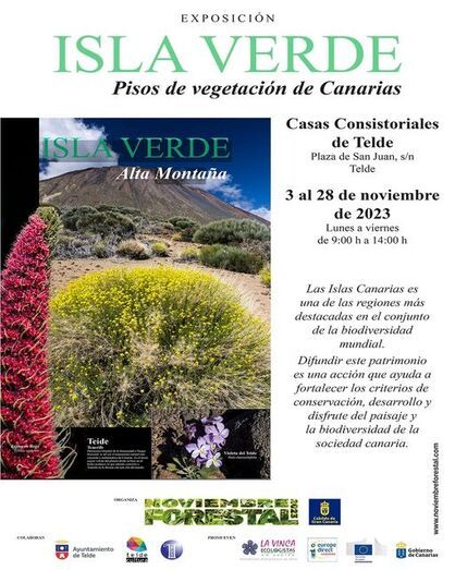 La exposición divulgativa Isla Verde-Pisos de Vegetación de Canarias llegó este viernes a las Casas Consistoriales de Telde, donde permanecerá abierta al público hasta el 28 de noviembre y se podrá visitar de lunes a viernes, de 9.00 a 14.00 horas. La muestra está incluida en la programación de Noviembre Forestal 2023, bajo la coordinación del Área de Medio Ambiente del Cabildo de Gran Canaria.