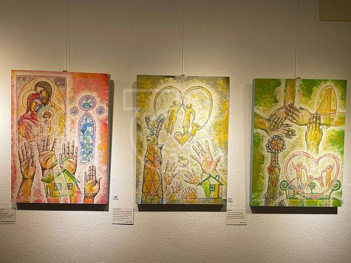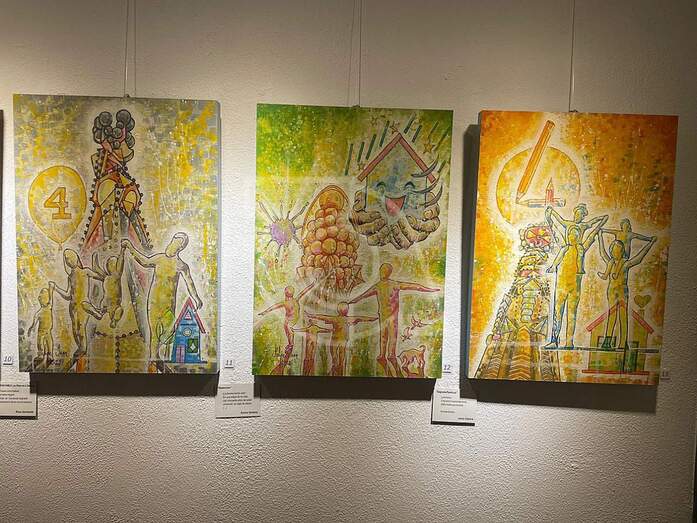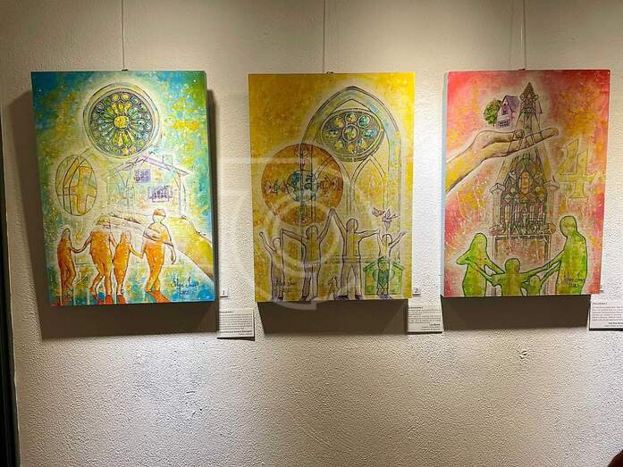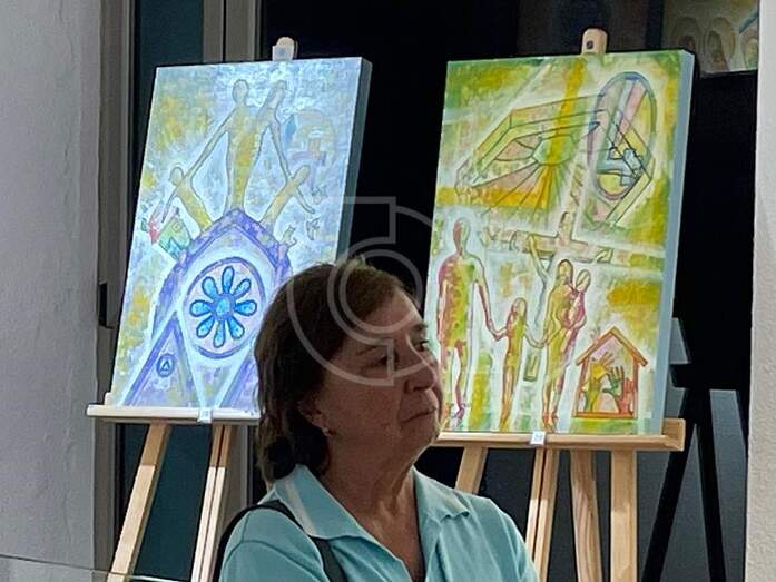 La familia en todo su esplendor de latido afectivo reparte su mensaje de color, palabra y música en cada obra que Felipe Juan en esta muestra describe con la natural, sensible, sacralidad poética en el mensaje de su inspiración elevando su mirada y manos a la Sagrada Familia y su simbolismo materializado en la monumentalidad arquitectónica de la Sagrada Familia de Gaudí y el entorno cromático que el artista en su diversidad pictórica y creativa expresa.