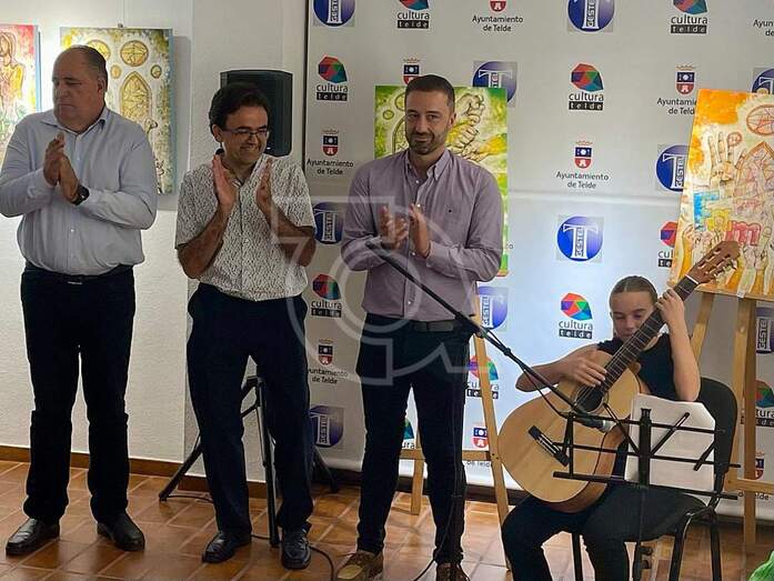 Con la interpretación de dos bellas composiciones musicales instrumentales para guitarra a cargo de Pilar, Alma y profesora Paula, alumnas de la Escuela Municipal de Música, Danza y Teatro de Telde. El alcalde Juan Antonio Peña Medina toma la palabra expresando el saludo y agradecimiento en nombre de la ciudad dando la bienvenida a Felipe Juan por hacer público en Telde su arte dirigido a la ciudadanía para pensar, interpretar y reflexionar sobre todo lo expuesto.