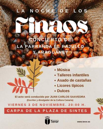 La Noche de los Finaos de Teror’ se inició con la música de la Parranda El pajullo, al mismo tiempo que se pudo saborear castañas asadas y dulces y, para los más pequeños, se realizaron talleres lúdicos ambientados en esta tradición. La agrupación teldense Araguaney actuó en segundo lugar, cerrando la velada en torno a las 23.00 horas.