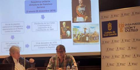 La Casa-Museo León y Castillo de Telde acogió este pasado martes, día 31 de octubre, una nueva sesión del ciclo Vivencias Paralelas. Una cita en la que el historiador y profesor Agustín Millares Cantero profundizó en el transfondo histórico de la Primera República española y que el colaborador Jesús Ruiz plasma en una crónica y reportaje gráfico.