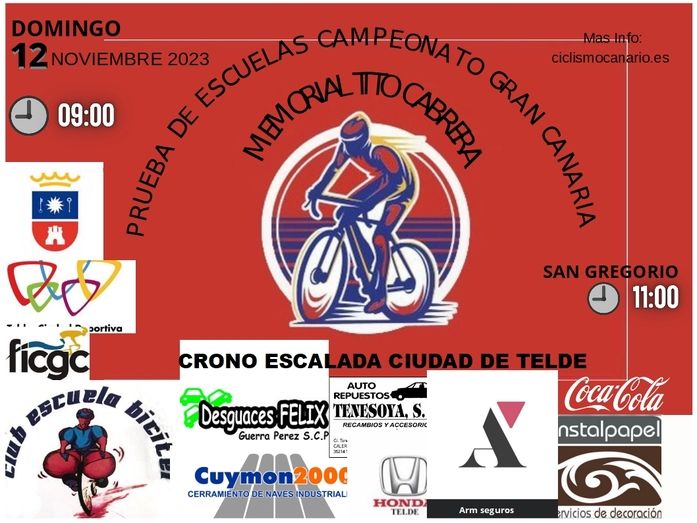El municipio se convierte este domingo, 12 de noviembre, en epicentro del ciclismo canario con la celebración de la Cronoescalada Ciudad de Telde - XX Memorial Tito Cabrera y de la Prueba de Escuelas de Ciclismo Campeonato de Canarias.