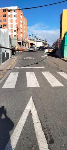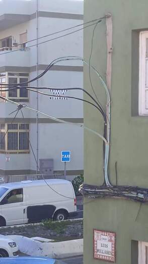 Susto en el barrio de Melenara por la caída a la carretera de un cable del tendido telefónico que se desprendió de una fachada al inicio de la calle Miramar.