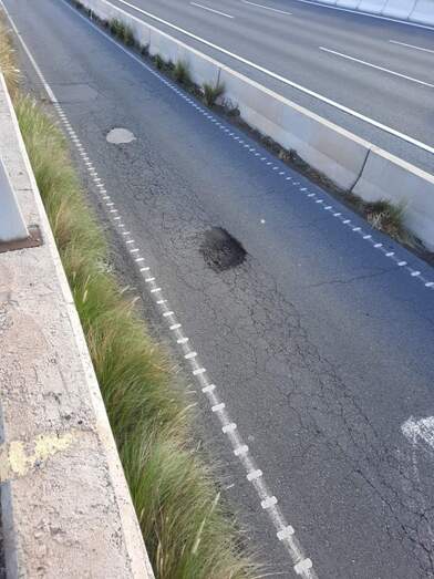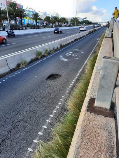 La vía de servicio paralela a la GC-1, enfrente a Las Huesas, un peligro para los vehículos