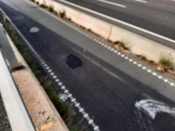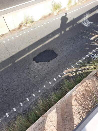 Noche de accidentes por los baches en la vía de servicio de la GC-1 a la salida de Salinetas