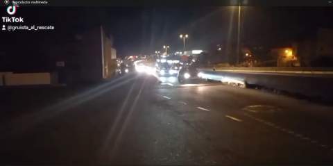 La vía de servicio de la GC-1, desde Salinetas en dirección a la capital grancanaria, vivió en la noche de este jueves numerosos accidentes por los grandes socavones que tiene el firme. Hubo más de 15 asistencias por reventones de neumáticos al tener que soportar todo el tráfico de la autovía, que estaba cerrada por obras de asfaltado y se había desviado por este carril paralelo.