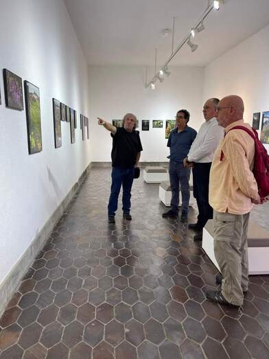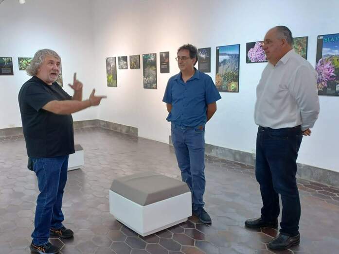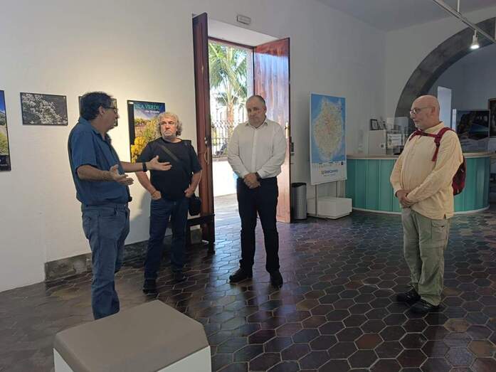 El concejal de Cultura, Juan Martel, recibió en las Casas Consistoriales al colectivo La Vinca Ecologistas en Acción, representado por su vicepresidente, Mario Marrero, y el secretario, Miguel Rodríguez, para visitar la la exposición Isla Verde, acompañados por el fotógrafo de la muestra, Marcos Martín.