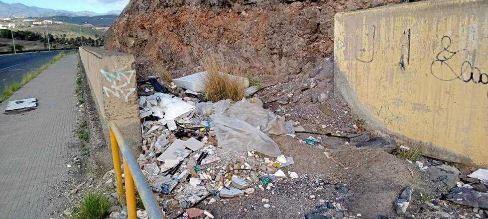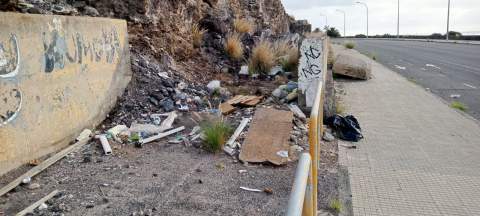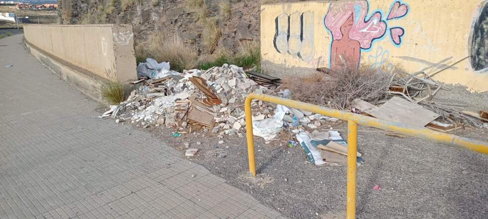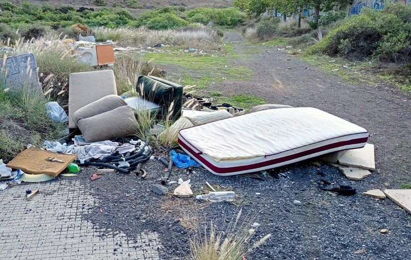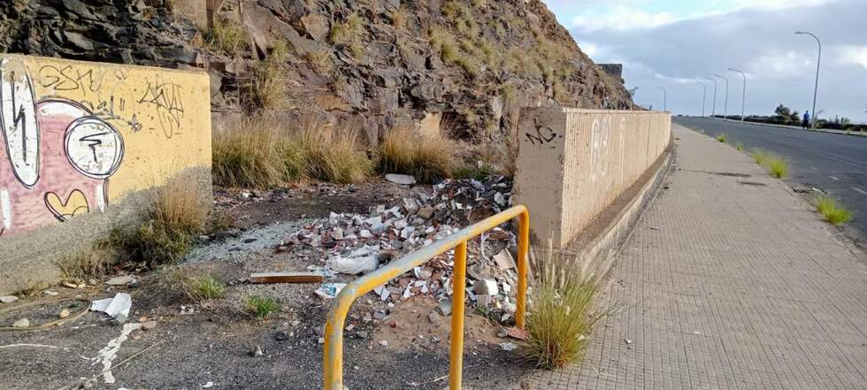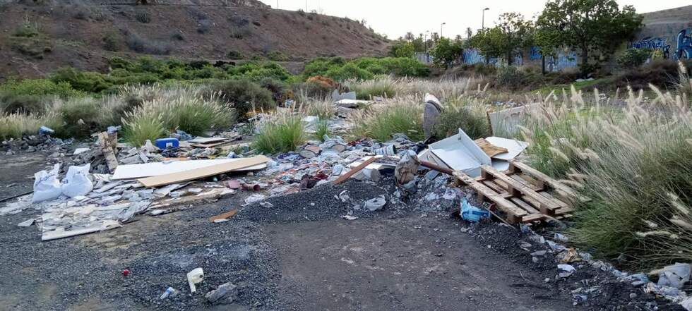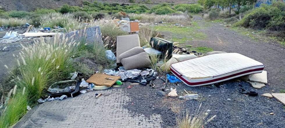 Neumáticos, colchones, sillones, sofás, maderas, muebles viejos, escombros, latas de pintura, alcantarillas sin tapas, farolas caídas y oxidadas, son sola algunas de las imágenes que tienen que ver las personas que realizan el camino que une el Lidl de Jinámar con la zona de Eucaliptus.