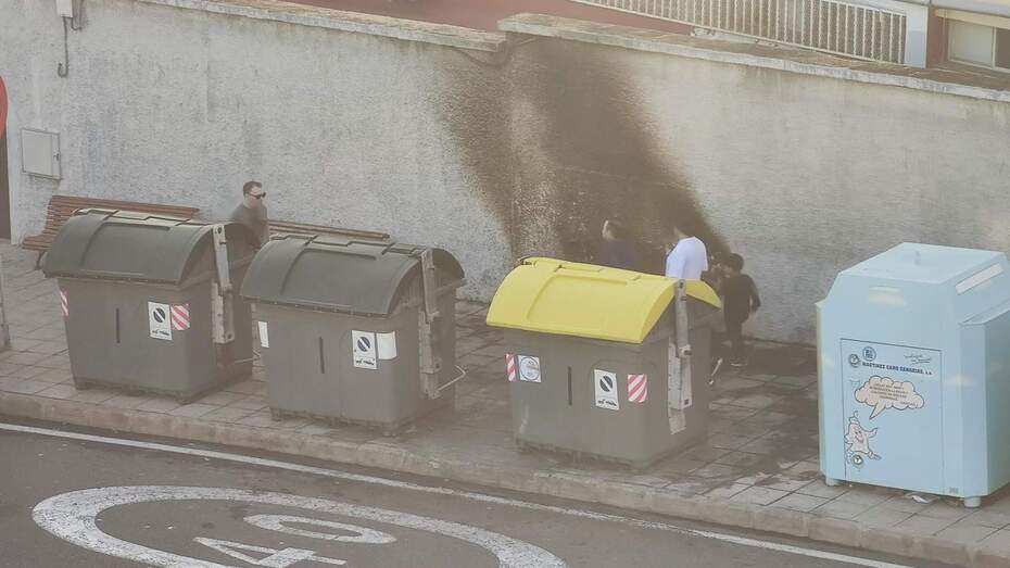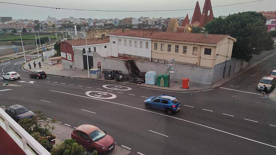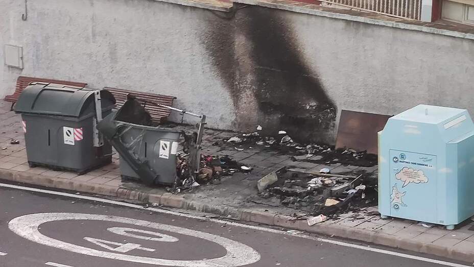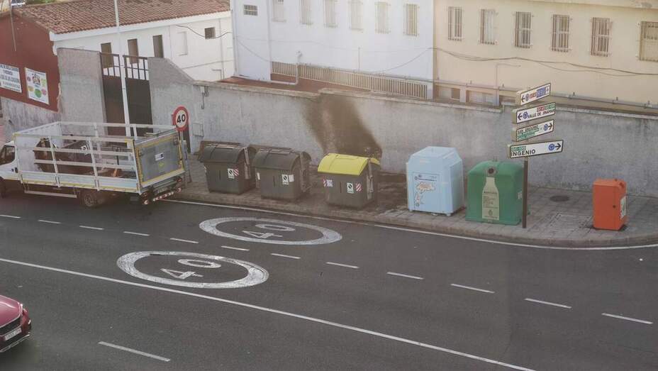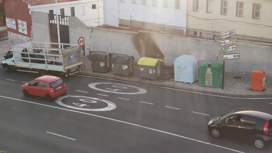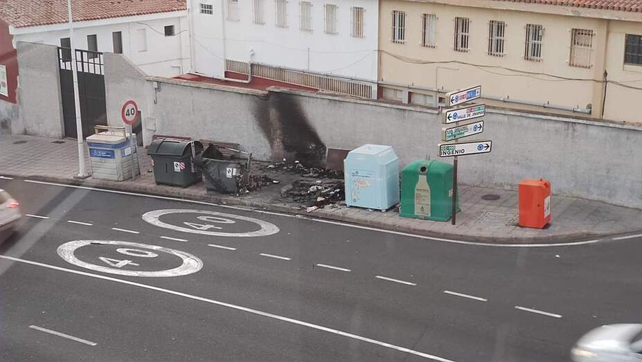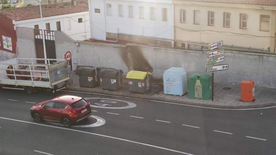 Los recipientes afectados, que quedaron completamente calcinados, estaban situados delante de las dependencias del antiguo colegio público,  en la carretera general que atraviesa el barrio, la GC-41, la vía que enlaza Telde con Valsequillo y San Mateo.
