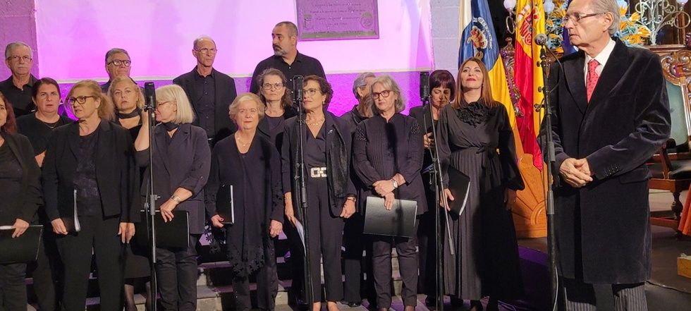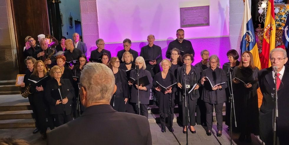 A los compases de la Banda Municipal de Música de Telde bajo la batuta de don José Martel y con la intervención del conocido tenor teldense con un amplio currículo artístico interpretativo en toda la isla, Heriberto Zerpa Falcón, elevan sus voces, acordes y armonías al cielo con el Himno a Telde, un emotivo y bello canto al pie de la fachada del templo parroquial neoclásico del santo que celebramos, San Gregorio, que emocionó a todo el público que llenaba la plaza.