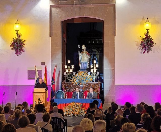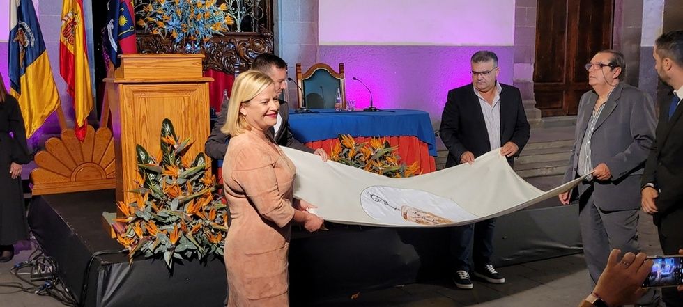 Finalizado el pregón ante las autoridades presididas por el alcalde de la ciudad don Juan Antonio Peña Medina y corporación se procedió al izado de bandera con la intervención del Coro Amati que dirige la profesora Narmis Hernández Perera, grupo vocal del Círculo Cultural de Telde entidad que preside el escultor Máximo Riol Cimas, recientemente galardonado con el título de Hijo Adoptivo de Telde.