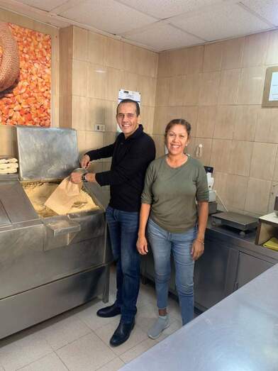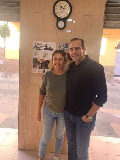 El empresario y asesor económico y político, el teldense Juan Verde, está de visita en el municipio y acudió el pasado sábado al Molino de Fuego para saludar a Elena Sánchez, socia copropietaria del negocio de la calle de María Encarnación Navarro.