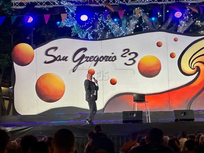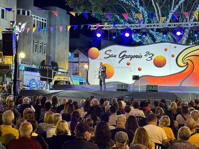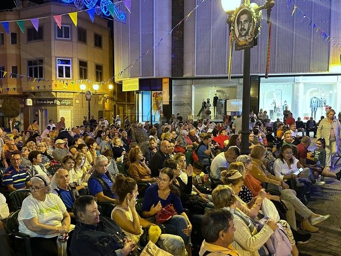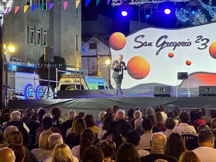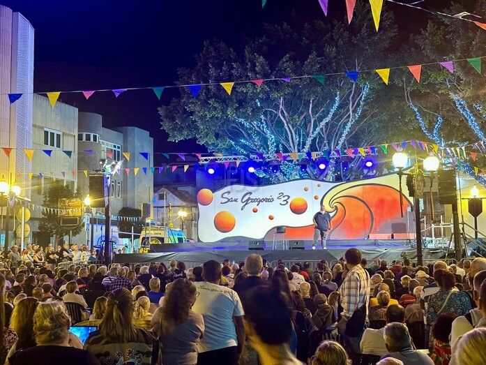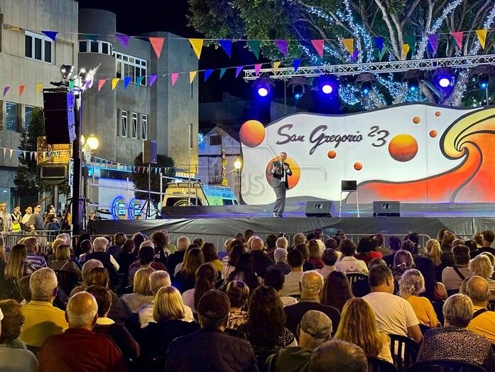Iván El Bastonero, Maestro Florido y Jorge Bolaños protagonizaron anoche una velada cargada de humor, arte y talento en la plaza de Los Llanos, a partir de las 20.30 horas, un acto enmarcado en las fiestas de San Gregorio Taumaturgo, patrono del enclave comercial de Telde.