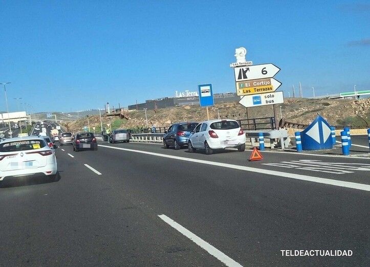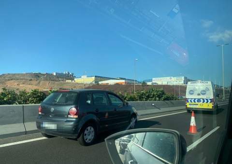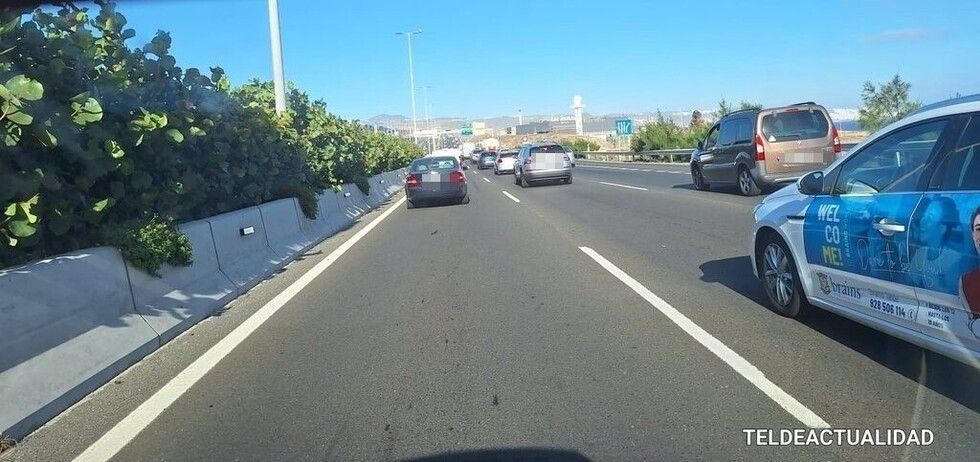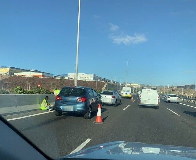 Una colisión entre dos vehículos en la GC-1 está provocando retenciones de tráfico en dirección a la capital grancanaria.