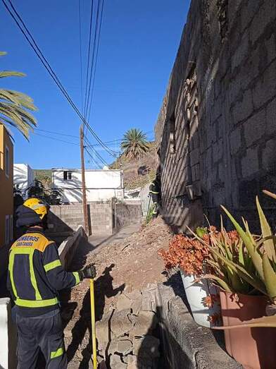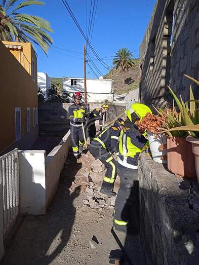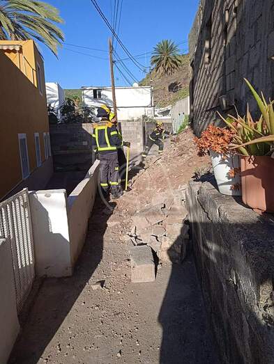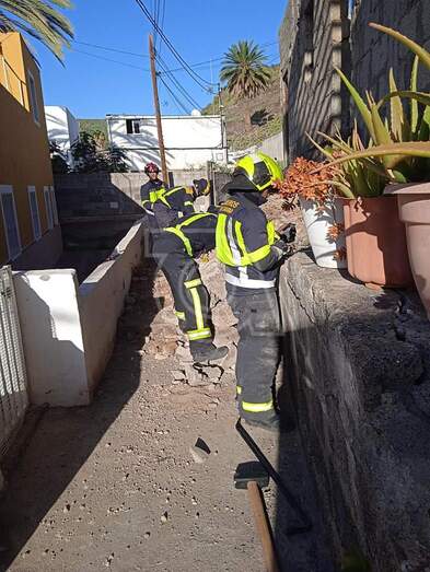 Los bomberos del parque zonal de Telde fueron activados a media mañana de este sábado para despejar el camino del material procedente del derrumbe, que había dejado incomunicado a un grupo de vecinos.