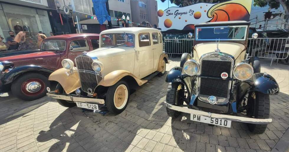 Decenas de vehículos antiguos y clásicos, de todas las épocas, marcas y cilindradas, se dieron cita este sábado en el casco de Los Llanos en una muestra organizada con motivo de las fiestas de San Gregorio Taumaturgo.