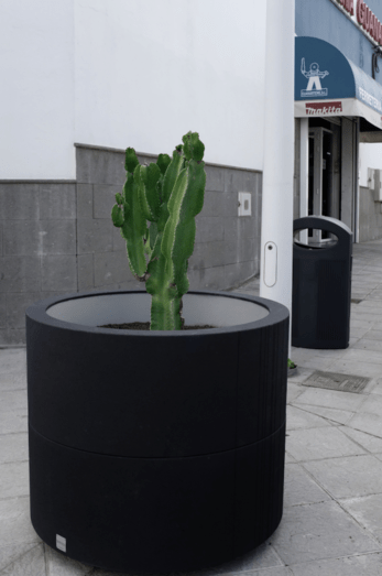Acompañando la nueva señalética, un mobiliario urbano elegante y en sintonía, nuevas papeleras y grandes maceteros con cactus que introducen un toque verde para crear un paisaje urbano más comercial.