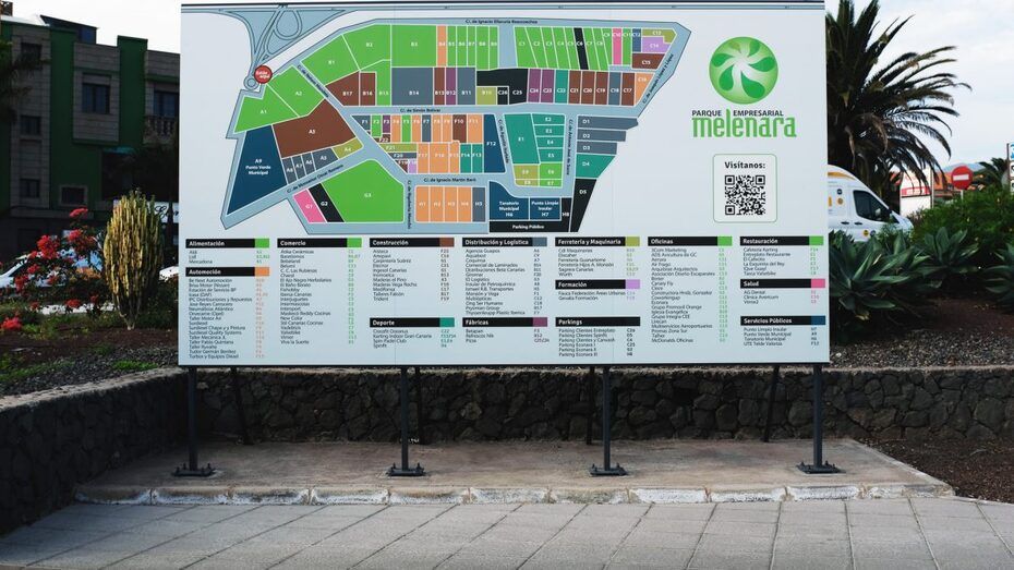 En el mismo acceso, se encuentra también un nuevo y colorido directorio en el que figuran las 105 empresas actualmente implantadas en el Parque Empresarial y un código bidi escaneable que proporciona acceso directo a la nueva web del Parque Empresarial Melenara paara ampliar información.