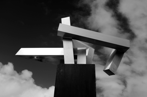 La glorieta que se encuentra a continuación distribuye el tráfico de forma ordenada y segura, espacio singular por su tamaño, en el cual se ha instalado la pieza escultórica Forjando el Camino, obra del diseñador Francisco López, en la que ha querido materializar el trabajo y el esfuerzo que hay detrás de la actividad empresarial y comercial.