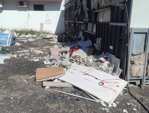El animal está amarrado en un descampado y los propios residentes se han ocupado de proporcionarle agua para que beba.