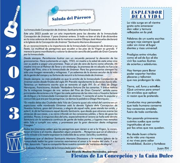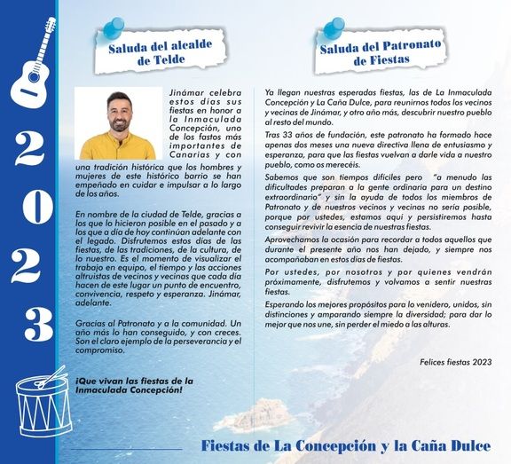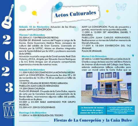 El casco antiguo de Jinámar se volverá a llenar de tradición con la celebración de las fiestas patronales en honor de La Concepción y la Caña Dulce, una de las más antiguas del municipio. Los fastos arrancan el 1 de diciembre con el pregón a cargo de la consejera insular de Cultura, Guacimara Medina, y culminan el 9 de diciembre, tal y como adelantó TELDEACTUALIDAD.