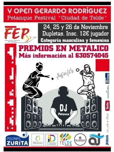 El parque urbano de San Juan acoge los días 24, 25 y 26 de noviembre el V Open Internacional de Petanca Gerardo Rodríguez. Un evento que se desarrollará bajo la organización del Club de Bola y Petanca Gerardo Rodríguez y con la colaboración de la Federación Española de Petanca y la Concejalía de Actividad Física y Deportes del Ayuntamiento de Telde, que coordina Cristhian Santana Caballero.