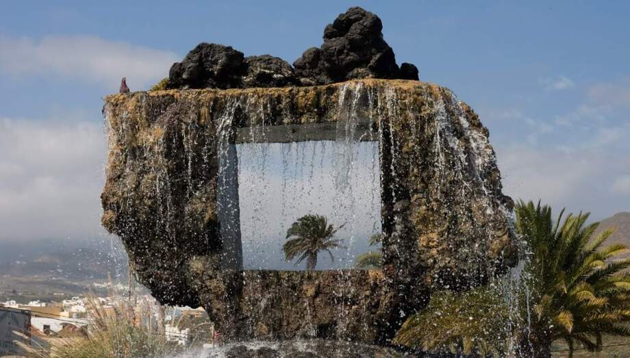 Por tanto, su ubicación geográfica no puede ser más estratégica. Gallardo nos recuerda que la relación de su obra, en cuanto a material empleado, se relaciona con la Montaña de Las Palmas, la cual deja su imponente silueta a la vista desde esa ventana abierta a la historia. De ahí, que Tony Gallardo expresara mientras ejecutaba la obra, en el año 1993, lo siguiente: “Difícilmente, pienso, podré como escultor de la lava, encontrar un contexto de interacción más fructífero que el que me brinda la situación de esta rotonda del Cubillo que acoge la fuente que estoy creando. Situado sobre el borde mismo del Casco Viejo de la Ciudad, abierto al campo, el hueco de la escultura encuadra el núcleo central del paisaje histórico a cuya vera ha crecido la población de Telde” (2).