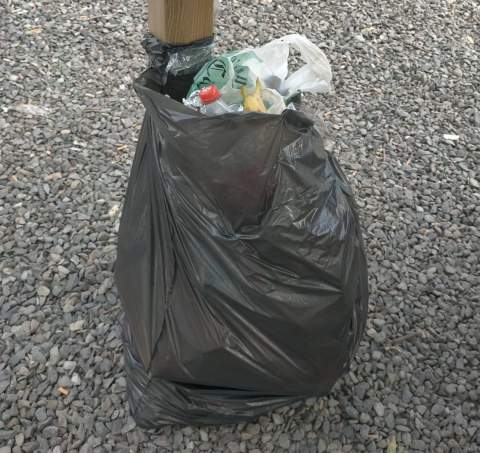 A tope de residuos. Así están este domingo las papeleras del Área de Descanso (merendero) del Corredor Paisajístico de Telde que está situada a pocos metros del puente de los Siete Ojos del Barranco Real, a la altura de El Cubillo.