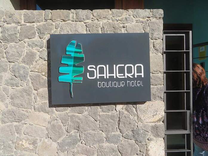 Como guiño a esta enclave del municipio, que hasta hace pocas décadas albergaba plataneras, Sahera coge la hoja de esta planta como logo y para decorar los espacios comunes del recinto.