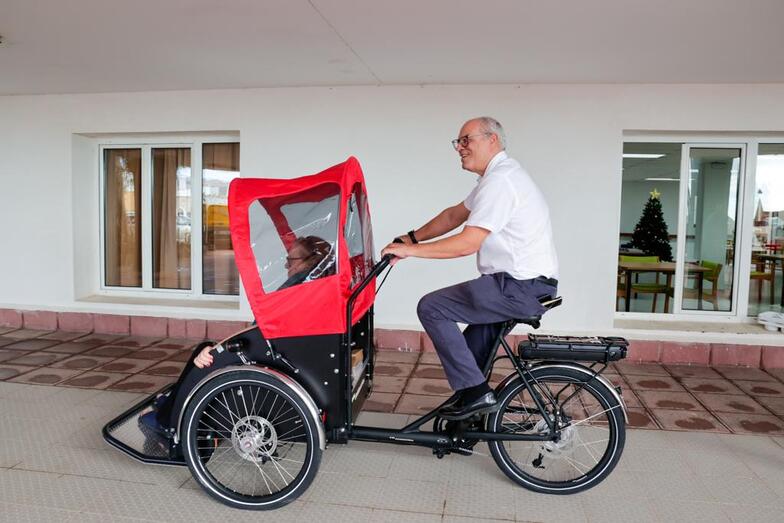 El Cabildo, a través del Instituto de Atención Social y Sociosanitaria (IAS), organismo dependiente del Cabildo, acaba de implantar este nuevo servicio de bicicletas eléctricas para que los mayores de la Residencia de Taliarte en Telde “puedan disfrutar con sus familiares dando un paseo al aire libre, tomar el sol y hacer una actividad diferente y divertida fuera de la residencia, algo que va a suponer un incremento en su calidad de vida y nos va a permitir tener un proyecto comunitario y abrir las puertas del centro para fomentar la participación de las familias en la vida diaria de los usuarios que podrán disfrutar de una nueva actividad con sus seres queridos”, ha manifestado la consejera Mena.