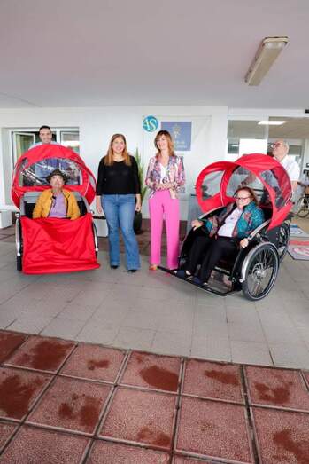 Este nuevo servicio contará con dos bicicletas eléctricas, que tienen capacidad para dos personas y tres ruedas, cedidas por el Colegio Oficial de Enfermería de Las Palmas, “un gesto maravilloso por su parte, cedernos estos vehículos va a significar sin duda poder hacer más felices a los mayores”, ha dicho en agradecimiento Isabel Mena a la presidenta del Colegio de Enfermería de Las Palmas, Rita Mendoza, que por su parte ha detallado que “los vehículos han sido traídos desde Dinamarca y han costado 5.000 euros cada una. Esta movilidad sobre ruedas favorecerá la interacción y el contacto con el exterior de los usuarios, un contacto que en muchas ocasiones se ve limitado por las propias condiciones de movilidad de estas personas. Este nuevo servicio supondrá un hito importante en los cuidados de salud que reciben estas personas, ya que mejorará su bienestar físico y emocional”.