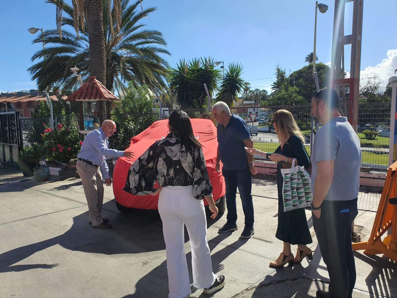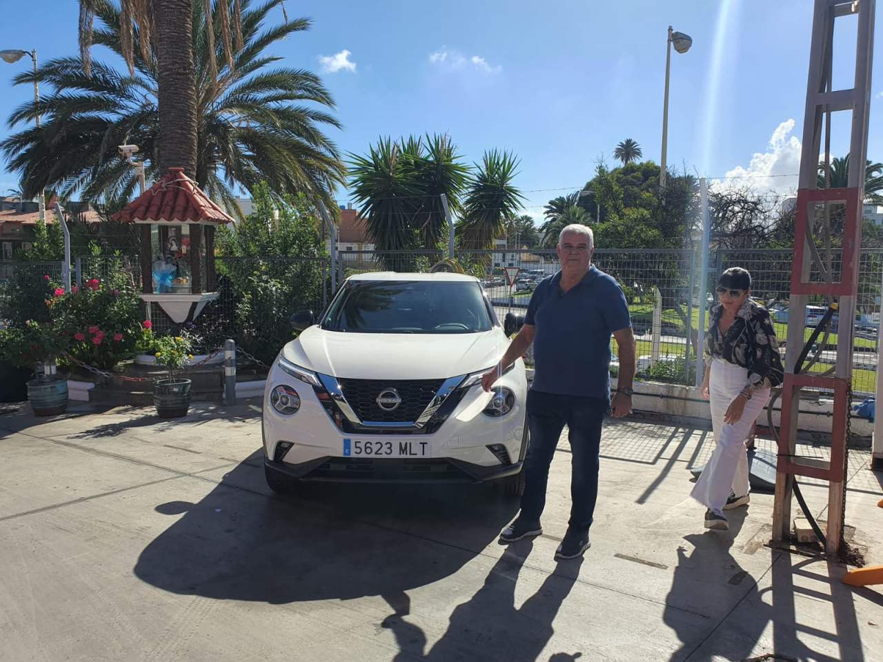 El agraciado, acompañado por su familia, recibió con alegría este flamante vehículo de la mano del representante de Nissan Telde.