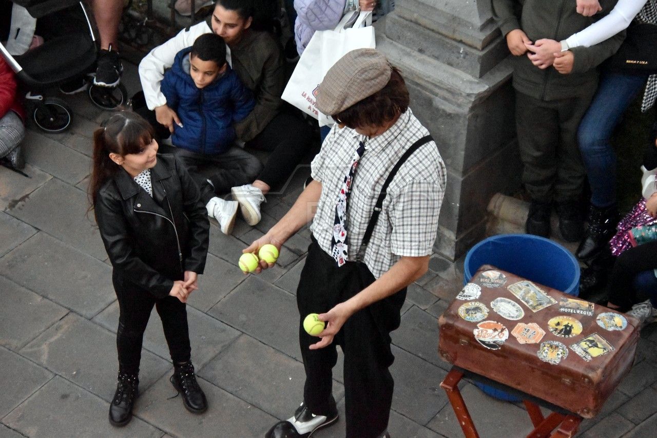 Seguidamente, un pasacalles de títeres gigantes, acompañado de una batucada, recorrió las calles desde Arnao hasta la plaza de San Gregorio para inaugurar el Belén Tradicional que, un año más, lleva las figuras y estatuillas de José Sánchez, quien fuese el belenista de la ciudad durante más de 50 años.