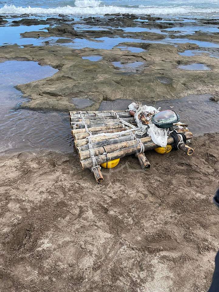 Se trata de una balsa de madera que lleva un artilugio electrónico con placas solares