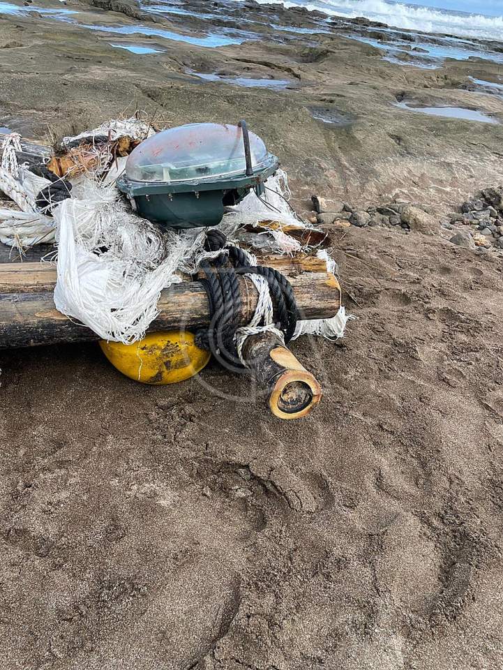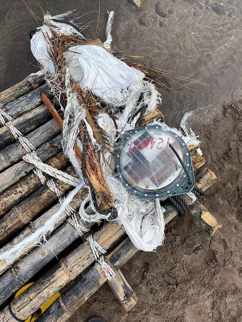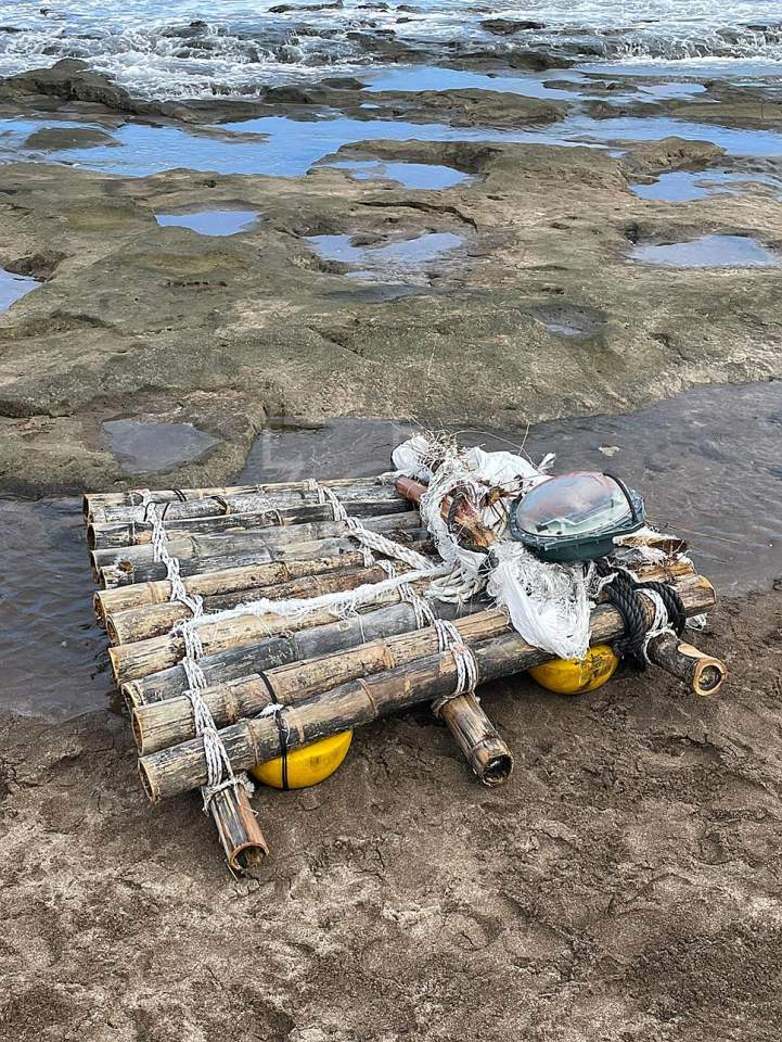 El misterioso artefacto está compuesto por varios flotadores sobre los que va una plataforma a base de troncos de madera que están enlazados entre sí con cuerdas. Sobre ella, una carcasa protectora en cuyo interior se encuentra una especie de dispositivo electrónico con varias placas solares.