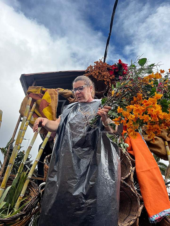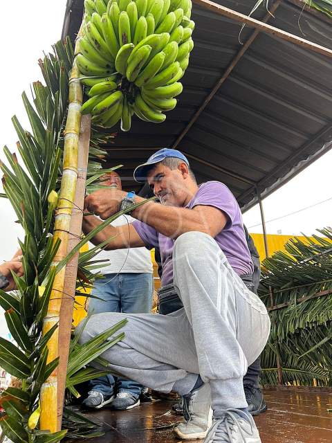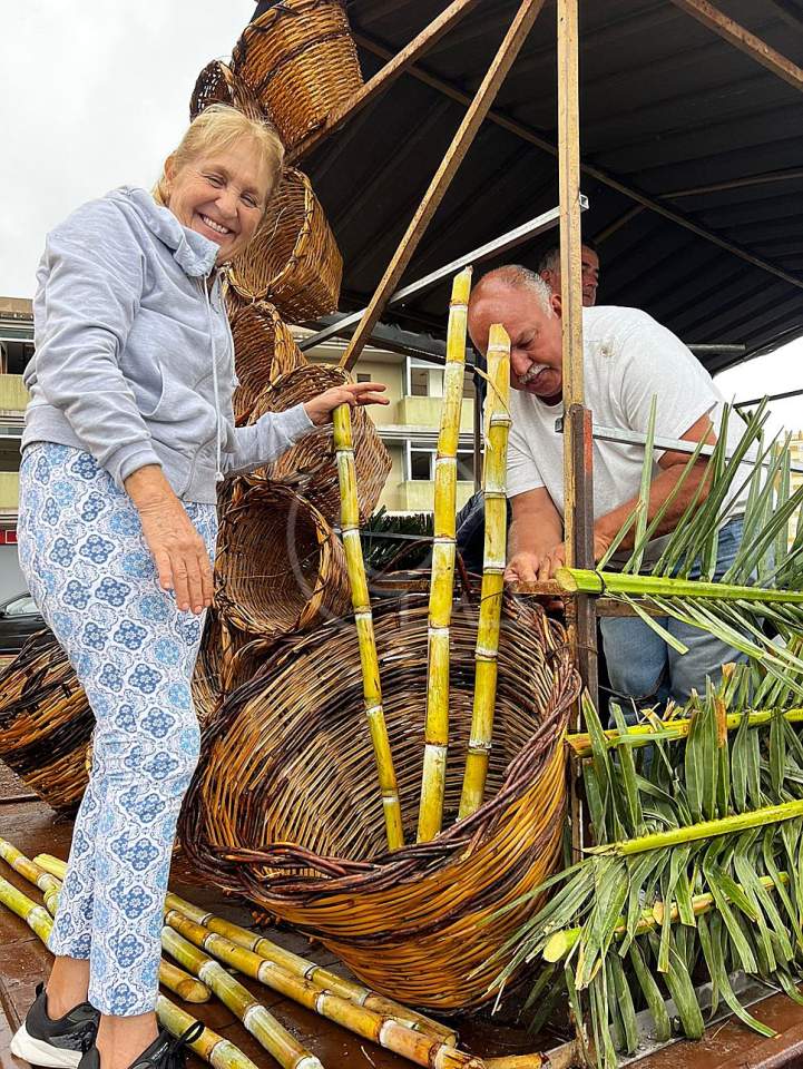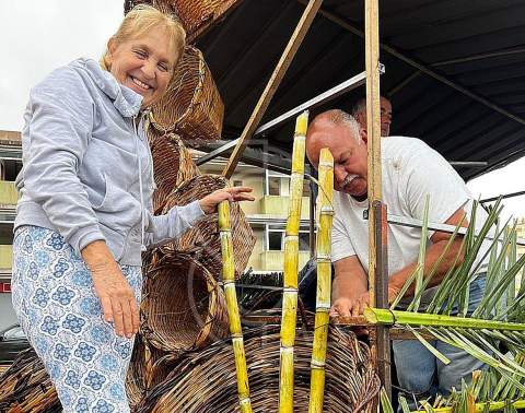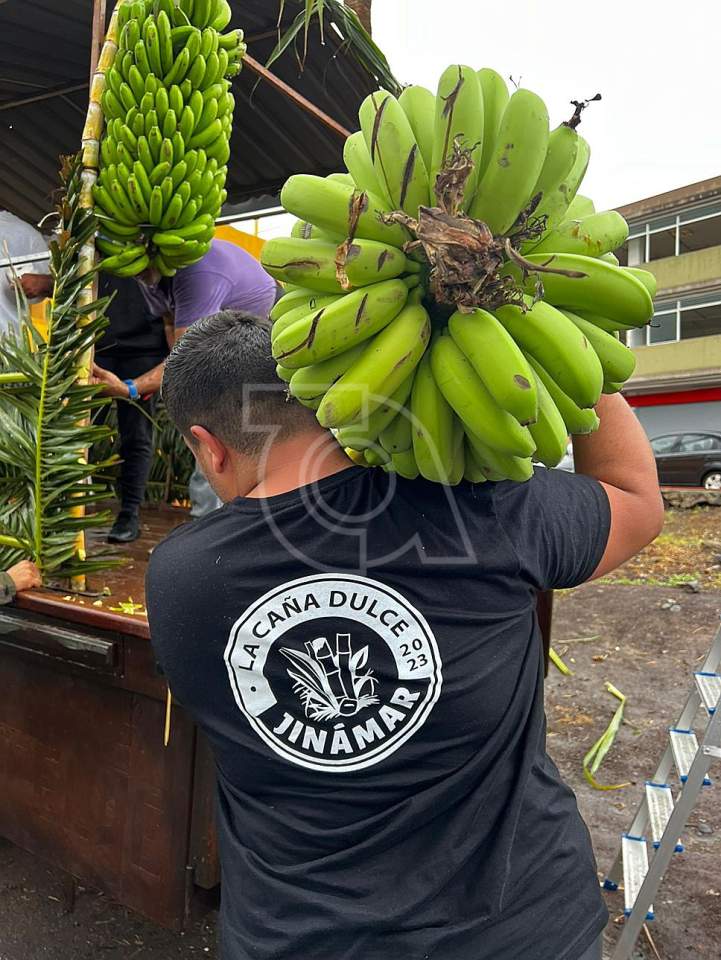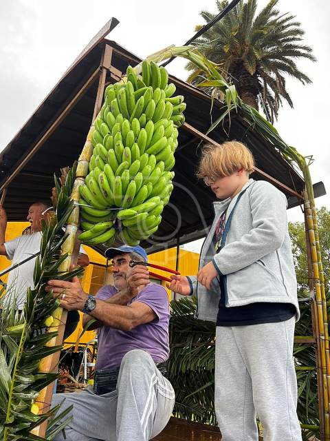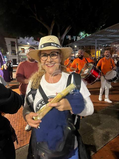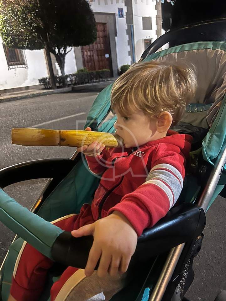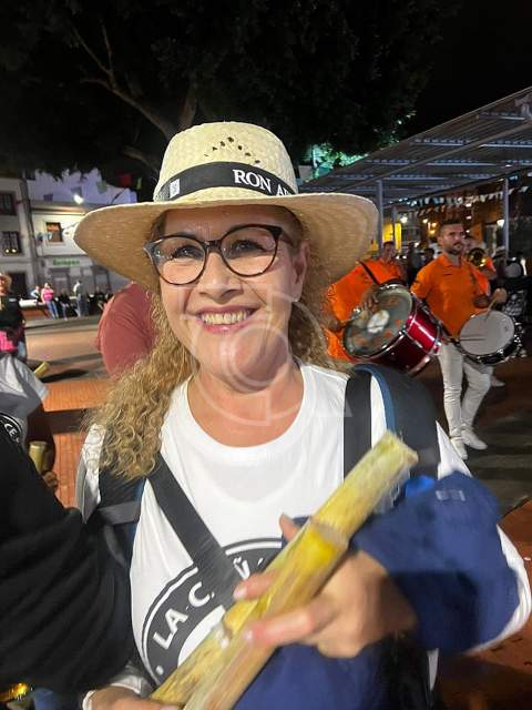 La juerga ciudadana se desató cuando el viejo carromato de todos los años, ataviado con traperas, hojas de plataneras y tomateras y cargado de caña cortada y lista para chupar, comenzó a repartir durante el recorrido trozos de la dulce planta, recién traída desde Mogán, y también vasitos de ron miel entre la muchedumbre que iba detrás.